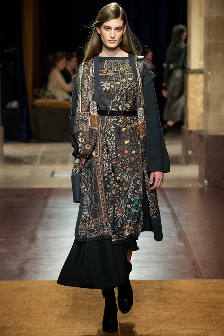 I have noticed that since taking over as head designer for Hermes, Christophe Lemaire (whose work I really love.  Hermes is a good fit for him) seems to favor a romantic memory of Paul Poiret with softly draped chemises, folkloric and Wiener Werkstatte prints.  Even a nod to Denise Poiret's famous fancy dress costume she wore to Poiret's 'Thousand and Second Night' party.